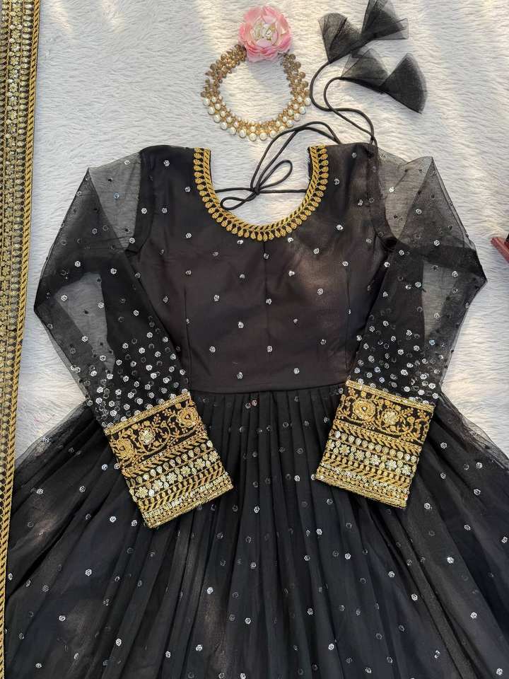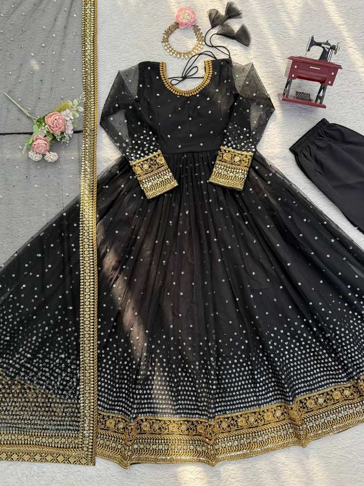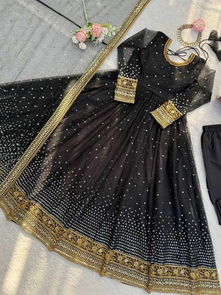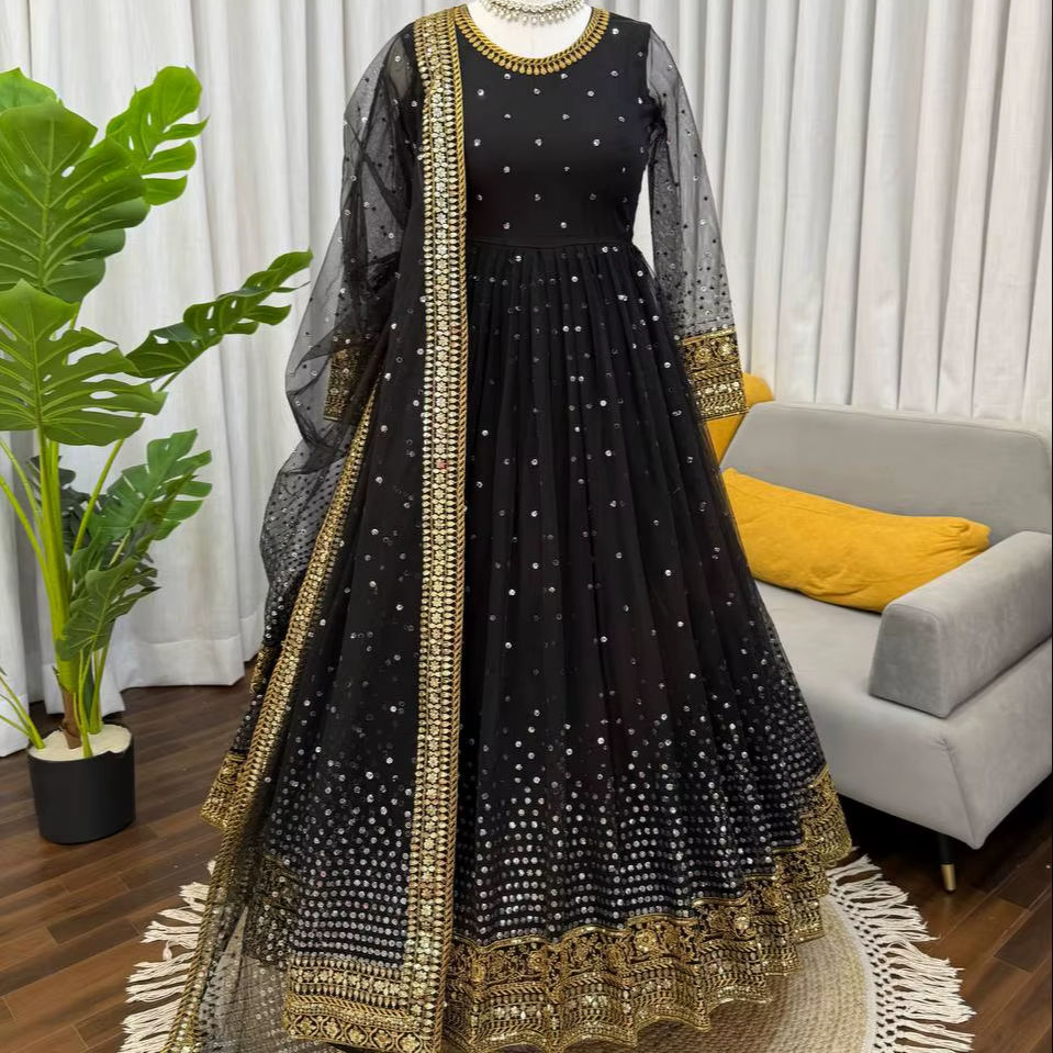 ชุดเดรสตาข่ายลายผีเสื้อแบบนุ่มพร้อมชุดงานเย็บติดกางเกงพร้อมชุด Dupatta