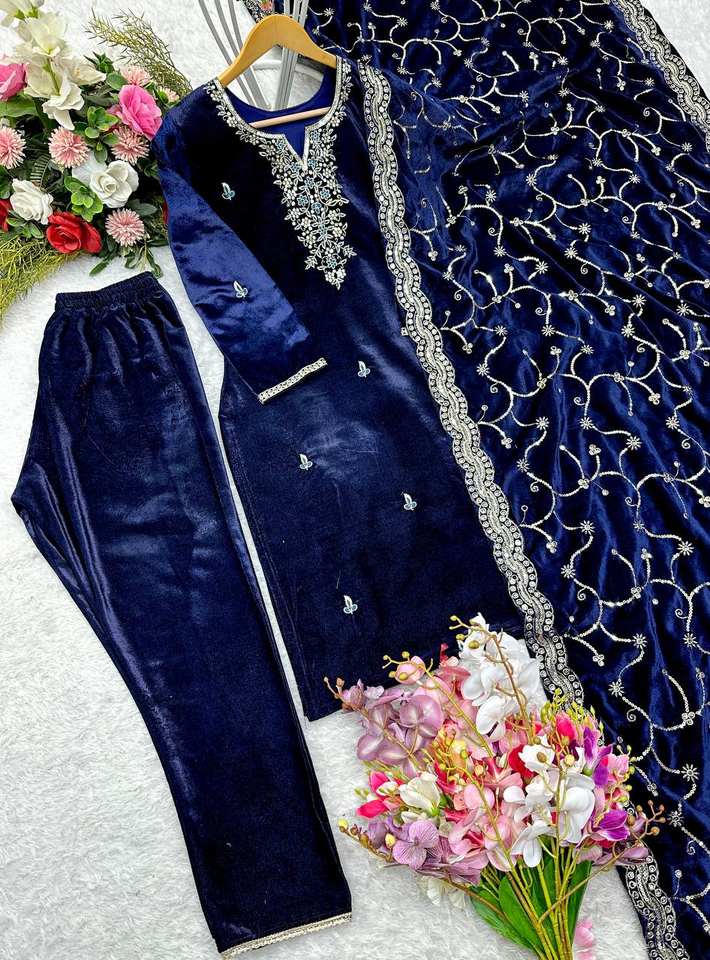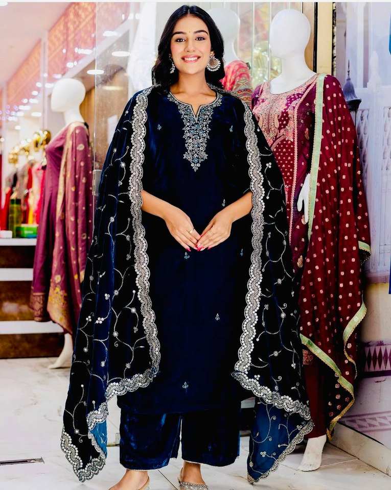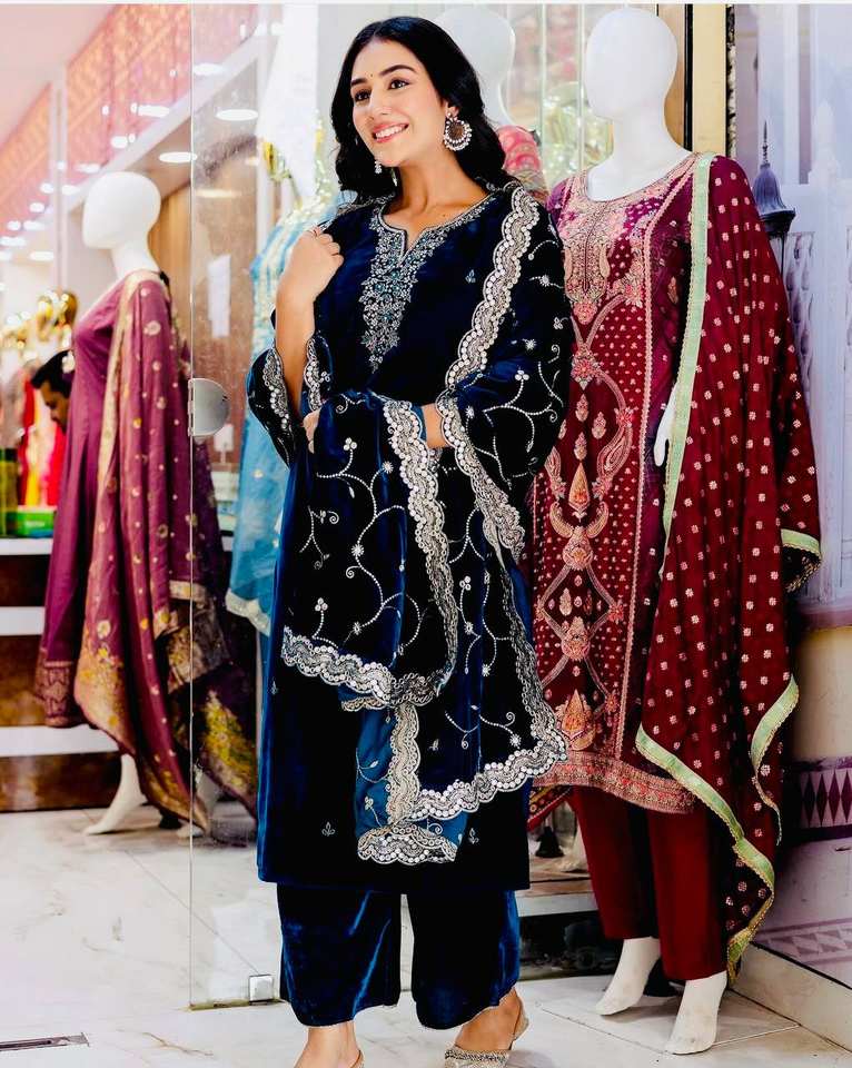 เสื้อกำมะหยี่ลาย pent dupatta แต่งรอยเย็บเต็มที่และพร้อมใส่สำหรับงานปาร์ตี้