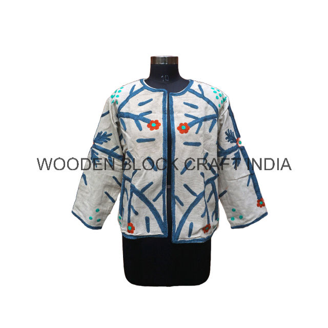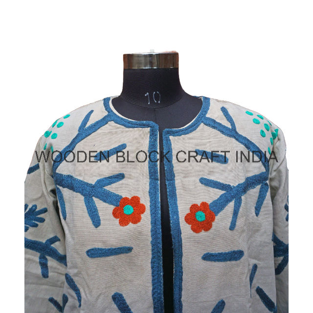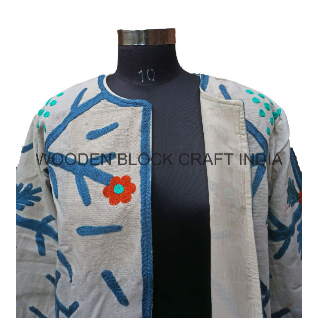เสื้อแจ็คเก็ตผ้าฝ้ายถักลายปักซูซานีสไตล์จีนแบบใหม่ ลายบล็อกพิมพ์ งานฝีมืออินเดีย สำหรับผู้หญิง ฤดูหนาว