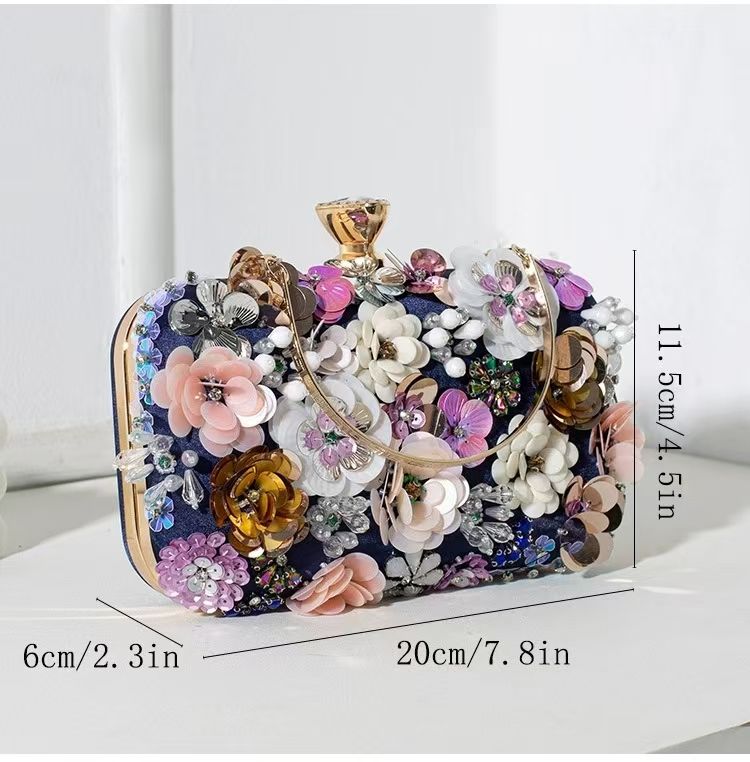 กระเป๋าคลัทช์สำหรับสุภาพสตรีแฟชั่นแบบใหม่กระเป๋าคลัทช์ประดับลูกปัดลายดอกไม้สีสันสดใส3D กระเป๋าคลัทช์สำหรับงานเลี้ยงอาหารค่ำ