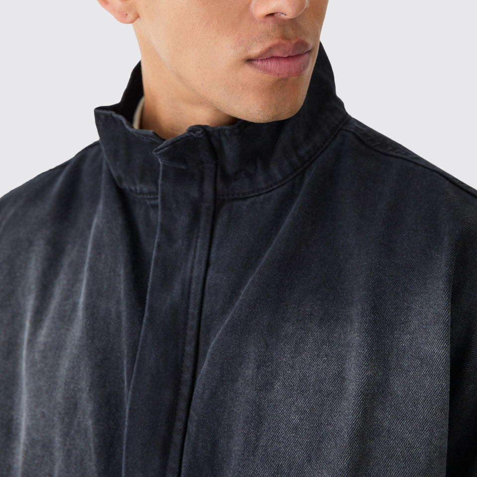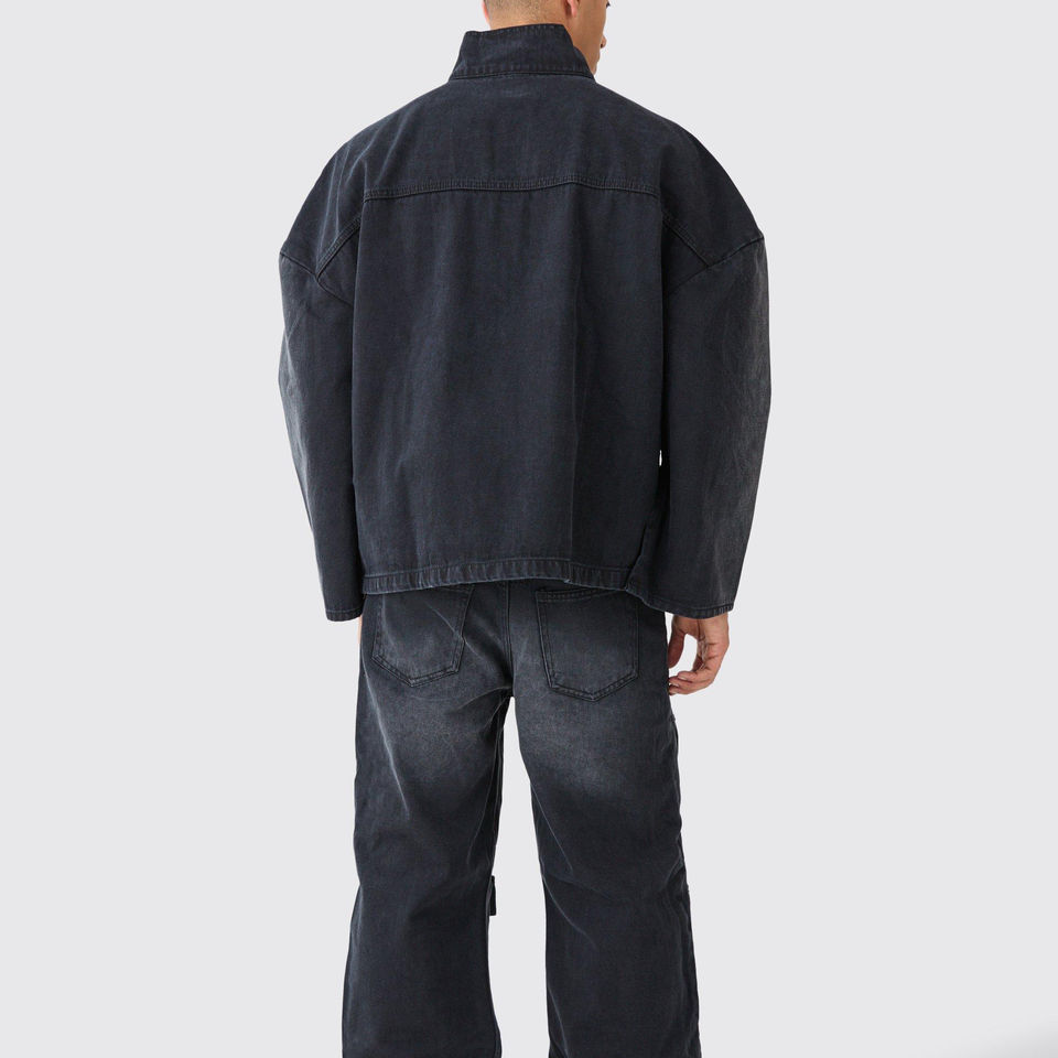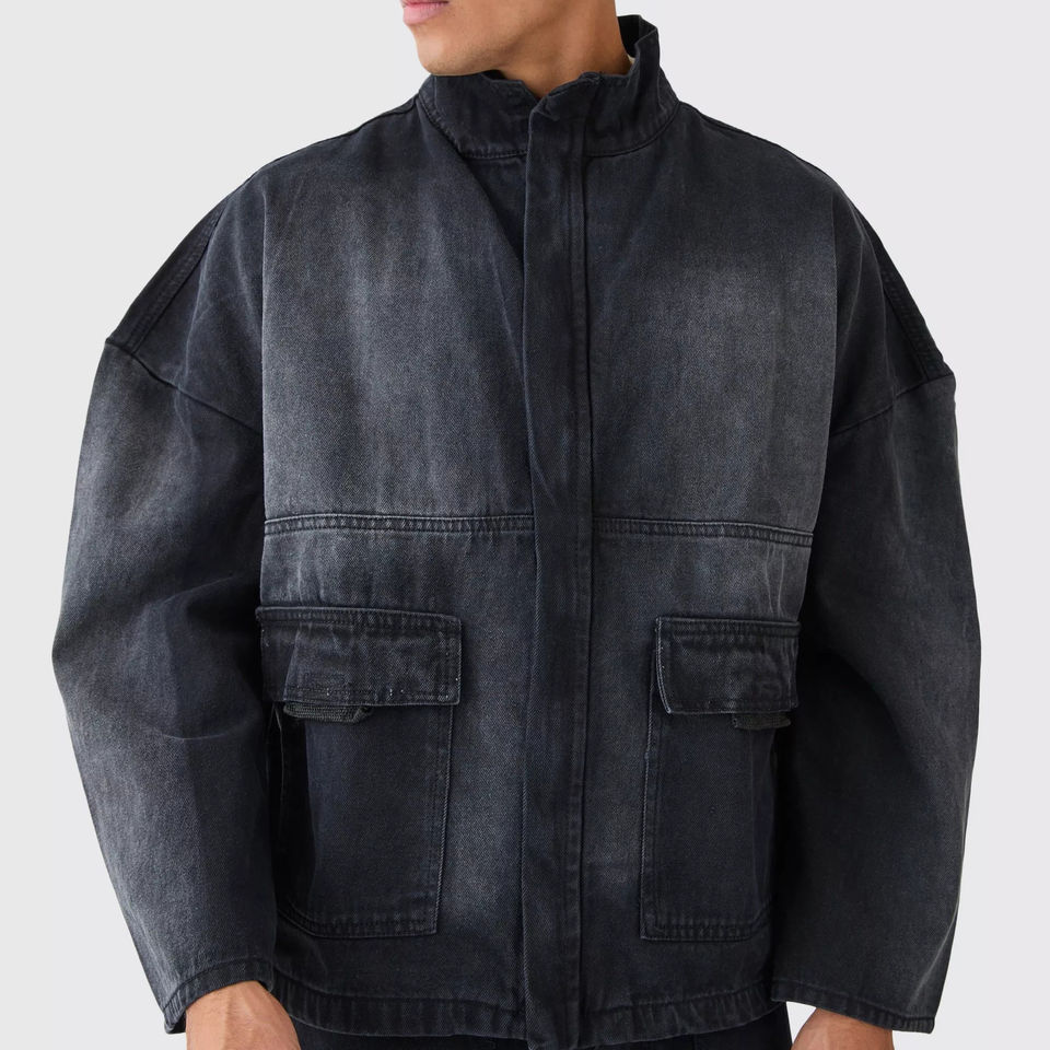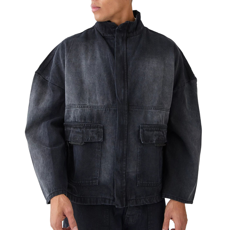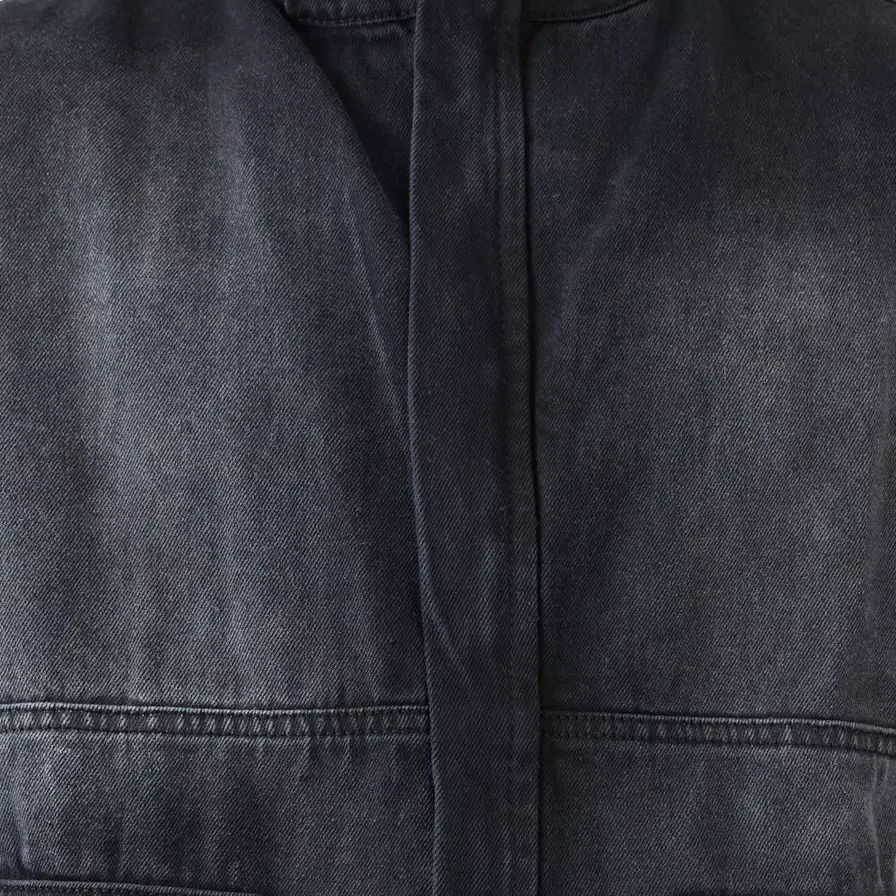 แจ็คเก็ตเดนิมฤดูหนาวแบบย้อนกลับได้ ไม่มีปก สีดำ ผ้าฝ้ายแท้ 100% คุณภาพสูง ทันสมัย ป้องกันลม เป็นมิตรกับสิ่งแวดล้อม ทรงโอเวอร์ไซส์