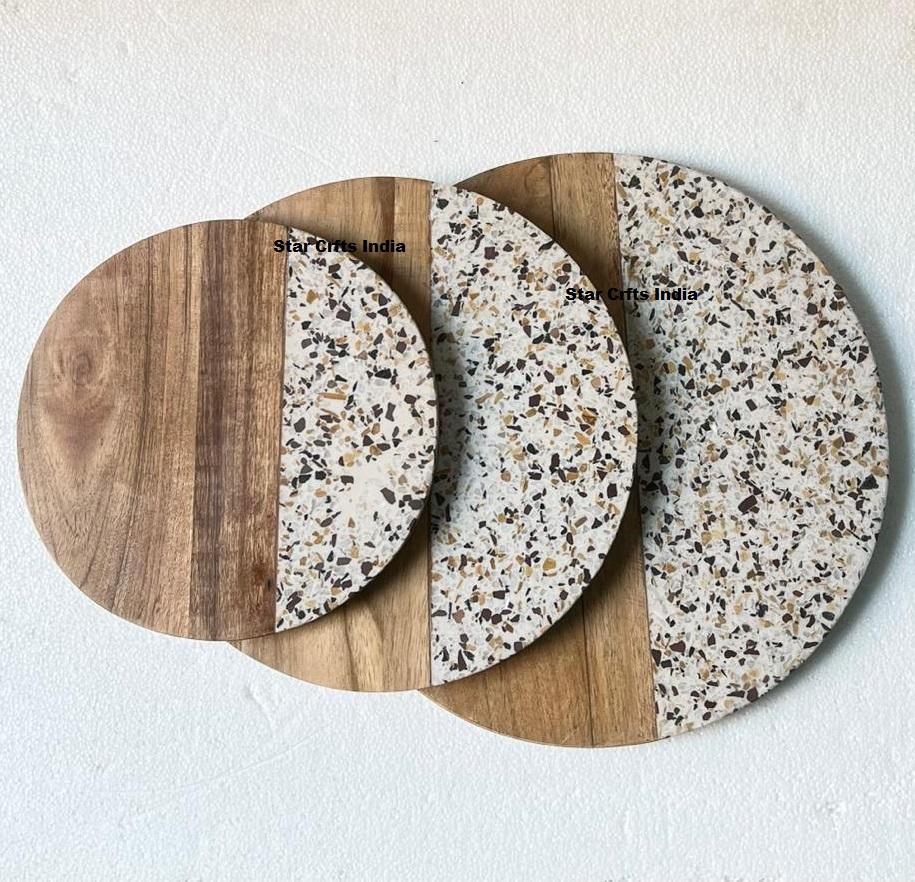 เขียงเสิร์ฟชีสทรงกลมไม้มะม่วงสีขาวล้างทำความสะอาดได้ หนา 2 ซม. ดีไซน์เรซิ่นสุดฮิต ล้างทำความสะอาดได้ในเครื่องล้างจาน