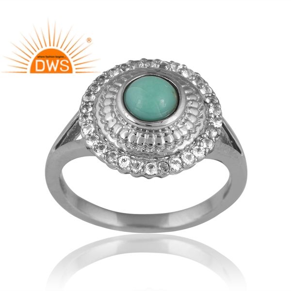 แหวนพลอยสีอาริโซน่าสีเทอร์ควอยส์สีขาวและสีเทอร์ควอยซ์ได้รับความนิยมแบบใหม่สำหรับผู้หญิงของขวัญตามสั่งสำหรับผู้หญิง