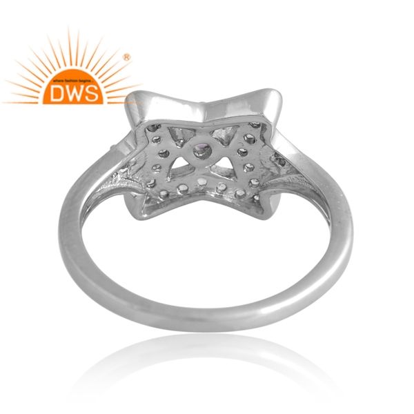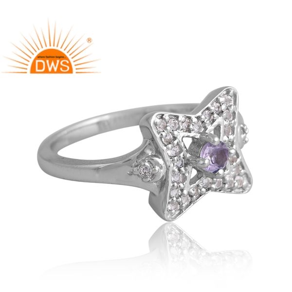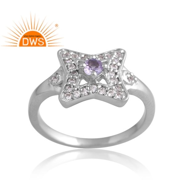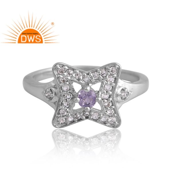 แหวนพลอยสีเงินชุบแพลเลเดียมแบบธรรมชาติและสีขาวโทแพซแบบปรับแต่งได้สำหรับผู้หญิง