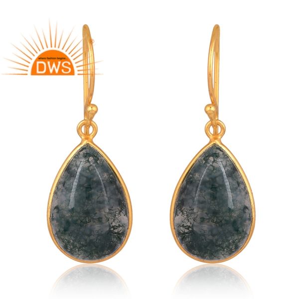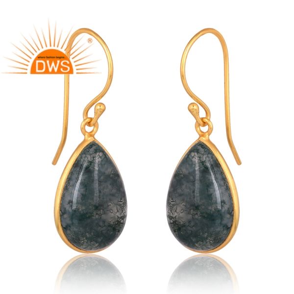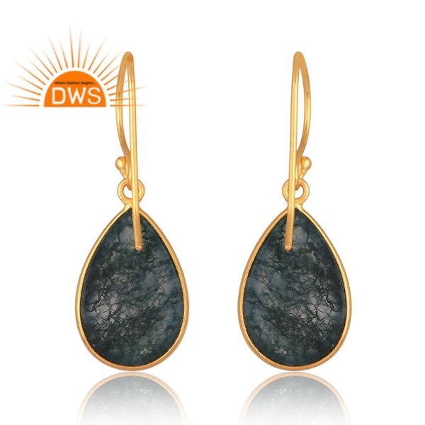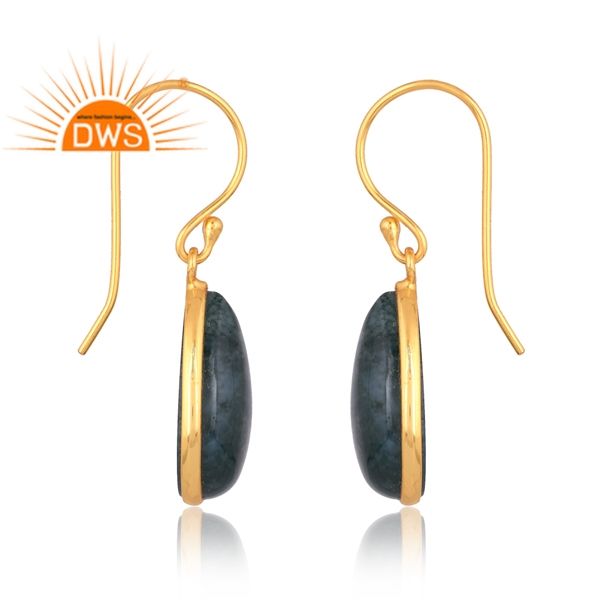 New Trending Sterling Silver 18K Gold Plated Natural Moss Agate Gemstone Earring Design Demi Fine Jewelry Manufacturer