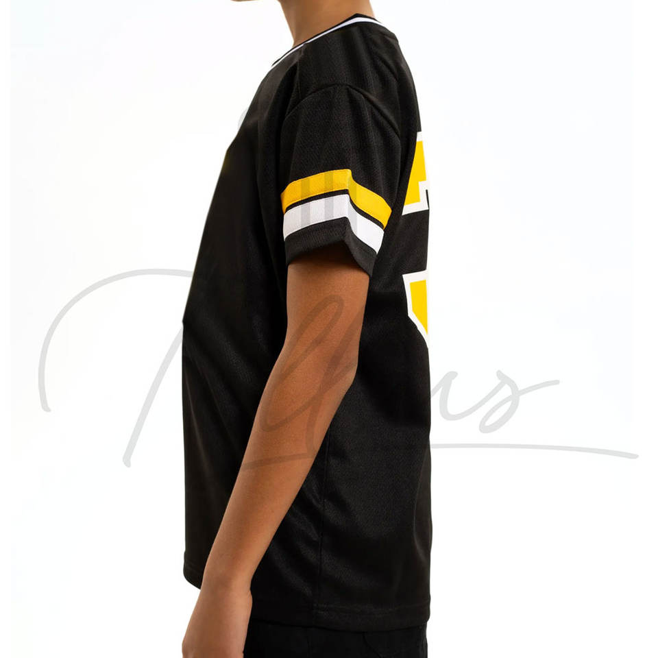 เสื้อฟุตบอลอเมริกันสไตล์ใหม่มาแรง คุณภาพสูง ระบายอากาศได้ดี ไซส์ใหญ่ แขนสั้น ผลิตจากโพลีเอสเตอร์ 100% สำหรับเด็ก