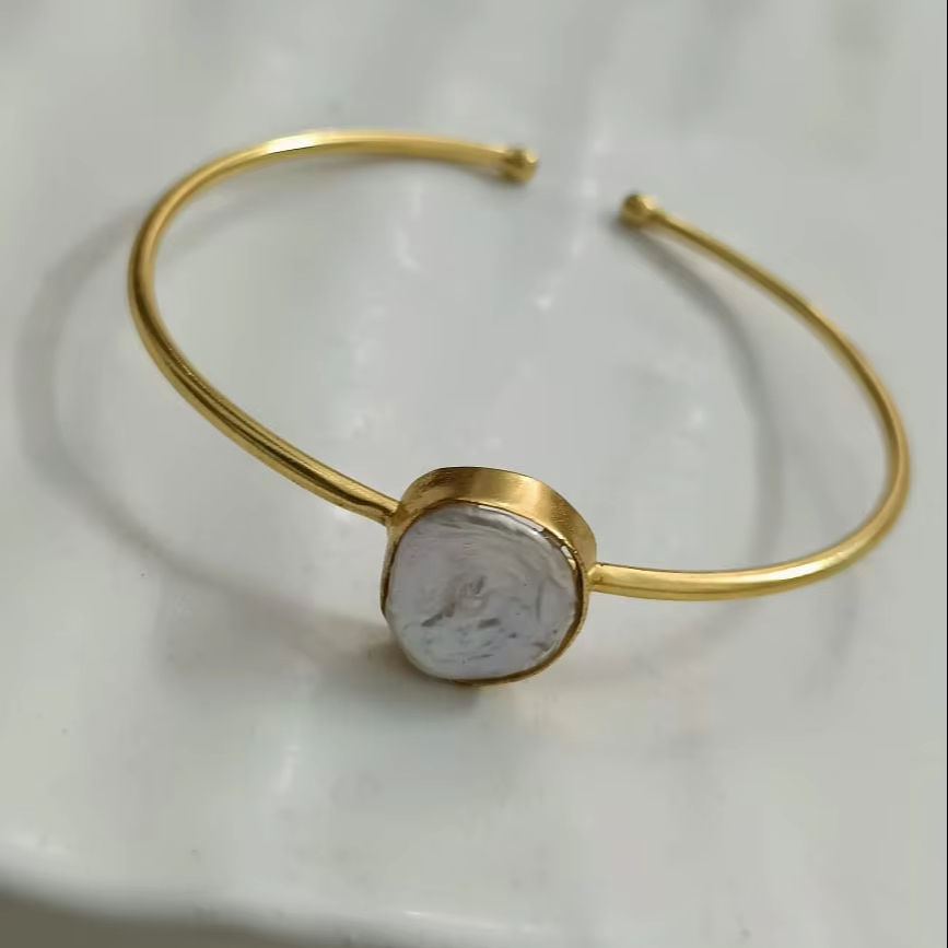 กำไลข้อมือหินเดี่ยวแบบปรับได้กำไลทองเงินชุบทองดีไซน์เฉพาะกำไลข้อมือทองเหลืองแบบแฟชั่น