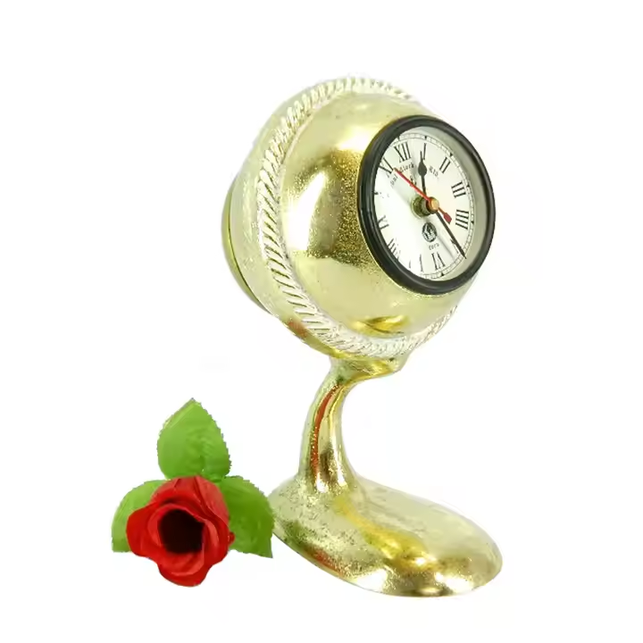 นาฬิกาตั้งโต๊ะโลหะตกแต่งลายนูนทำจากทองเหลืองสีทองแบบโบราณตั้งโต๊ะในสำนักงานเทรนด์ใหม่