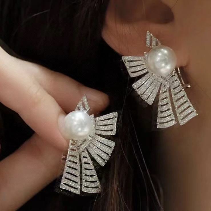 ต่างหูมุกน้ำจืดเคลือบทอง 14K ดีไซน์หรูหราทันสมัยสำหรับผู้หญิง ต่างหูคริสตัลดีไซน์เฉพาะตัว