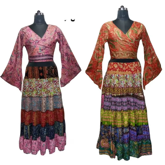 ชุดเสื้อและกระโปรงสั้นสไตล์วินเทจโบโฮสุดฮิตสำหรับผู้หญิง ผ้าไหมแท้ 100% ลายดอกไม้ เหมาะสำหรับงานแต่งงานและงานปาร์ตี้