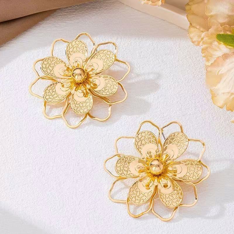 ต่างหูแบบติดหูรูปดอกไม้ ดีไซน์คลาสสิกทันสมัย ทำจากโลหะผสมสังกะสี สำหรับผู้หญิง เหมาะสำหรับงานแต่งงาน งานหมั้น และเป็นเครื่องประดับที่สง่างาม