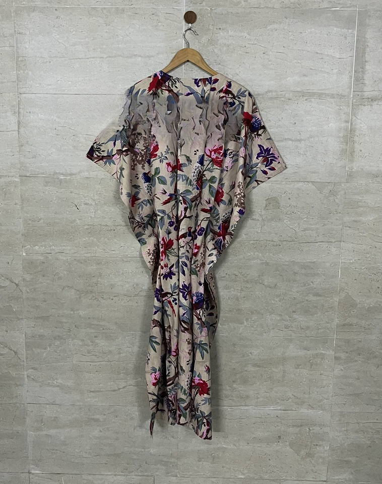 เดรสแม็กซี่ผ้าฝ้ายคาฟตันสำหรับผู้หญิงชุดเดรสยาวผ้าคอตตอนพิมพ์ลายดอกไม้