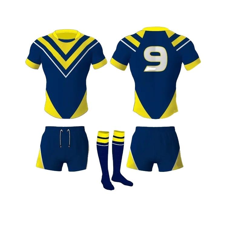 ชุดรักบี้แบบมืออาชีพสำหรับทุกเพศ ดีไซน์ทันสมัย รับสั่งทำพิเศษ พิมพ์ลายได้ ป้องกันแบคทีเรีย แห้งเร็ว ระบายอากาศดี บริการ OEM สำหรับทีมรักบี้ 100%