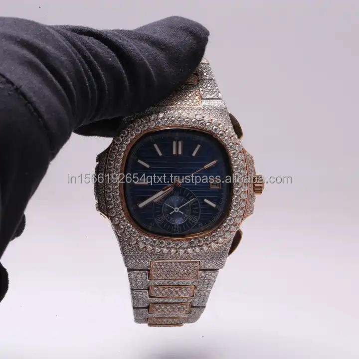 การออกแบบที่ทันสมัยใหม่แฟชั่นเย็นออกนาฬิกาเพชร Moissanite ความชัดเจน VVS สําหรับของขวัญทางธุรกิจจากอินเดีย