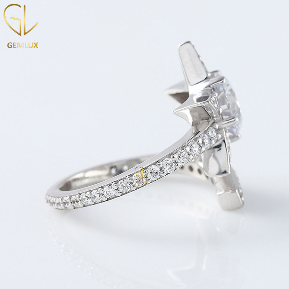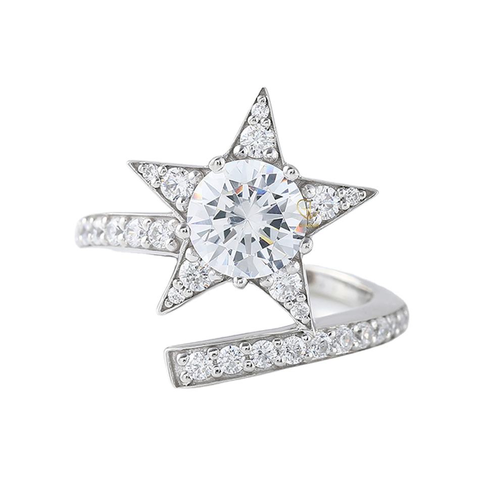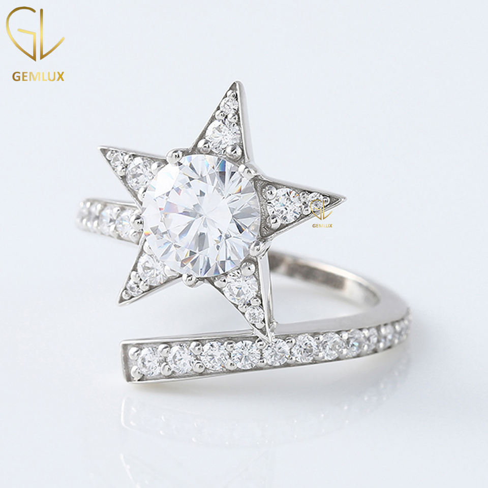 ใหม่อินเทรนด์ออกแบบรูปดาวแหวนเพชร,รอบตัดMoissaniteเพชรดาวแหวน,แหวนบายพาส,แหวนเงิน925.