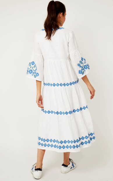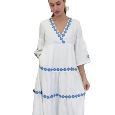 ชุดเดรสยาวถึงข้อเท้าแขนพองปักลาย,ชุดลำลองปาร์ตี้ทันสมัย