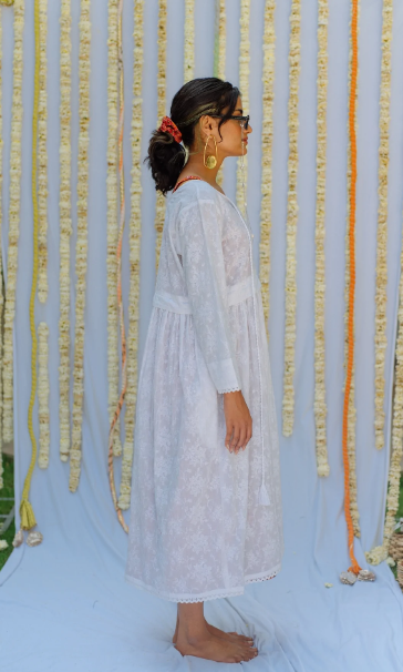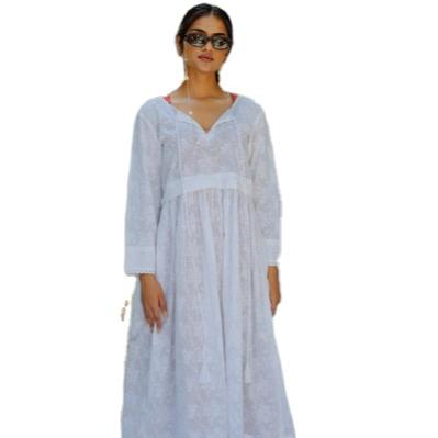 ใหม่อินเทรนด์ปักผ้าฝ้ายผ้า3/4แขนลูกวัวความยาวพรรคสวมใส่ชุดลำลองยาว