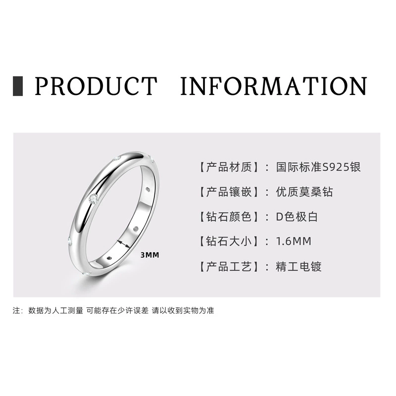 เครื่องประดับแฟชั่นใหม่ แหวนวงกลมคู่เพชรแท้ เงินแท้ 925 ของขวัญสำหรับทุกเพศ