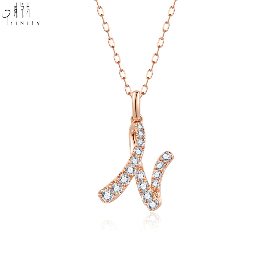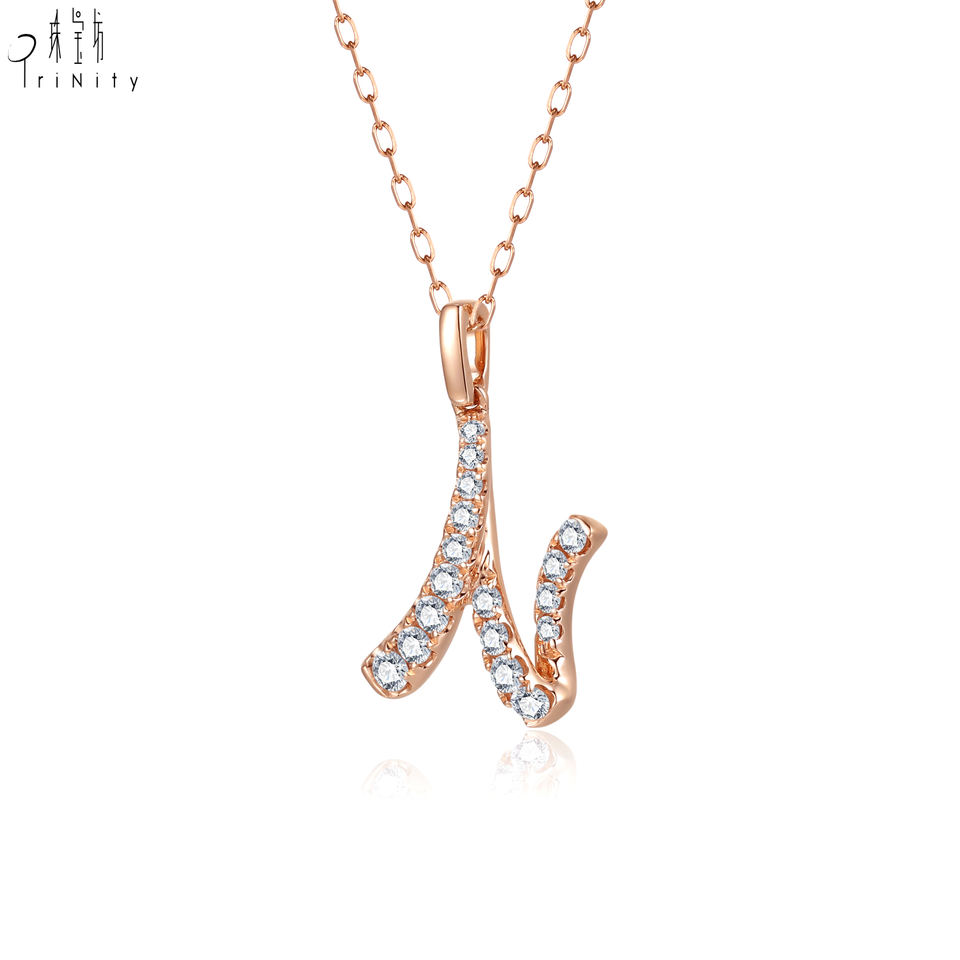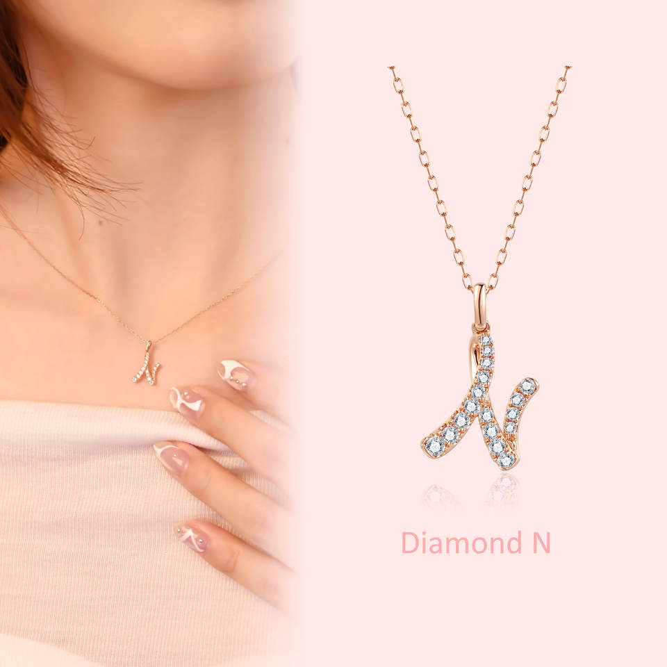 ใหม่อินเทรนด์เครื่องประดับประดิษฐ์Elegant Designสร้อยคอทอง 18 กะรัตเพชรธรรมชาติตัวอักษรNสร้อยคอจี้ผู้หญิง