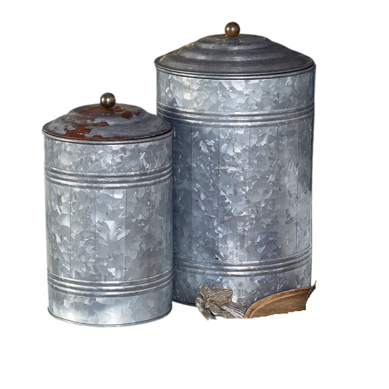 ชุดกระป๋องเก็บอาหารดีไซน์ทันสมัยเคลือบกัลวาไนซ์ อุปกรณ์ครัวตกแต่งสวยงาม ภาชนะใส่น้ำตาลชาทำมือจากโลหะ