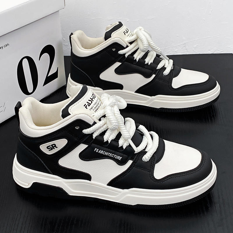 รองเท้าเดินผู้ชายทรงหุ้มข้อรุ่นใหม่ทันสมัย ผ้าส่วนบนยืดหยุ่น ซับในถักแบบ Fly Knit บุผ้าฝ้ายหนา กันลื่น ใส่สบาย เหมาะสำหรับนักเรียน