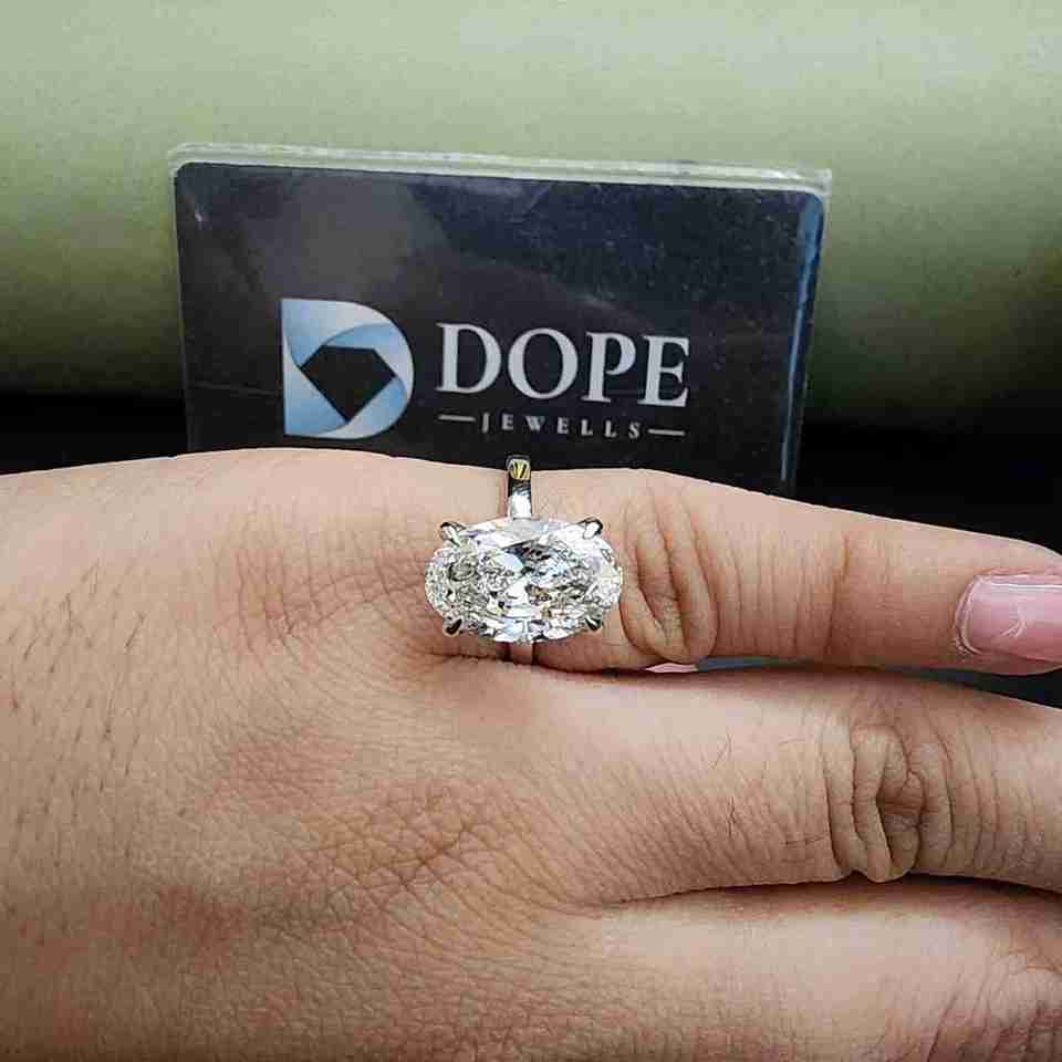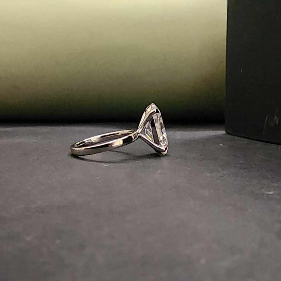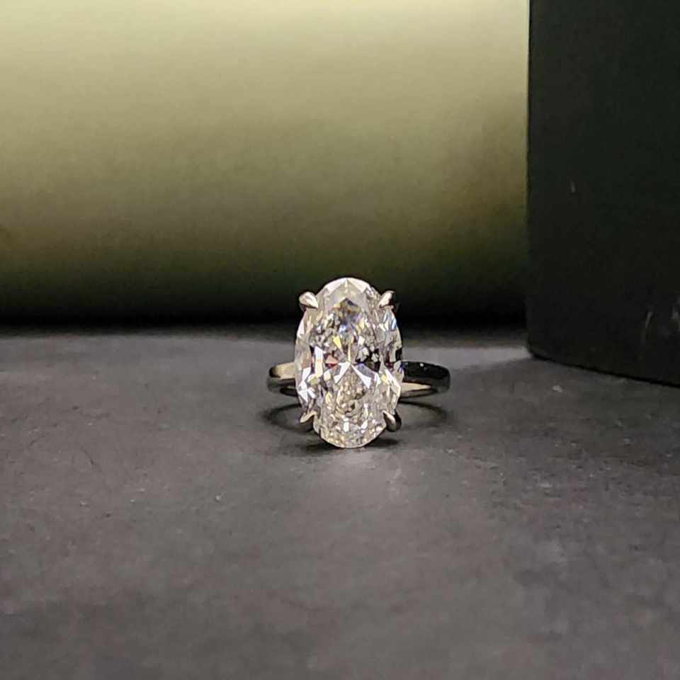 แหวนหมั้นโมอิสซาไนต์ทรงรีเม็ดเดี่ยวทันสมัยรับรองโดย IGI สำหรับทุกเพศ ทำจากเงินแท้ 925 และสแตนเลส
