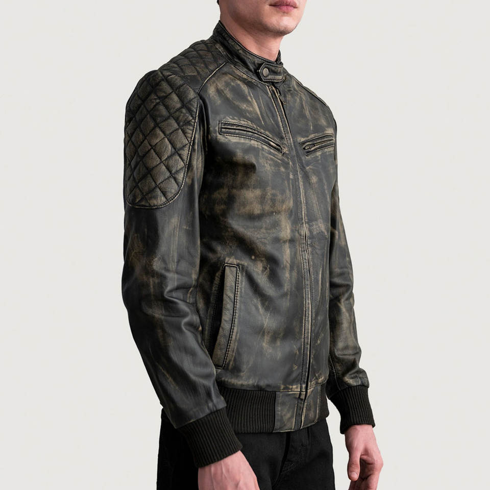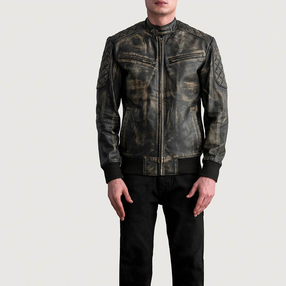 New Trendy Look Men Leather Jacket Coated Stand Collar Eco-Friendly Vintage Hot Selling Premium Quality Customized Front