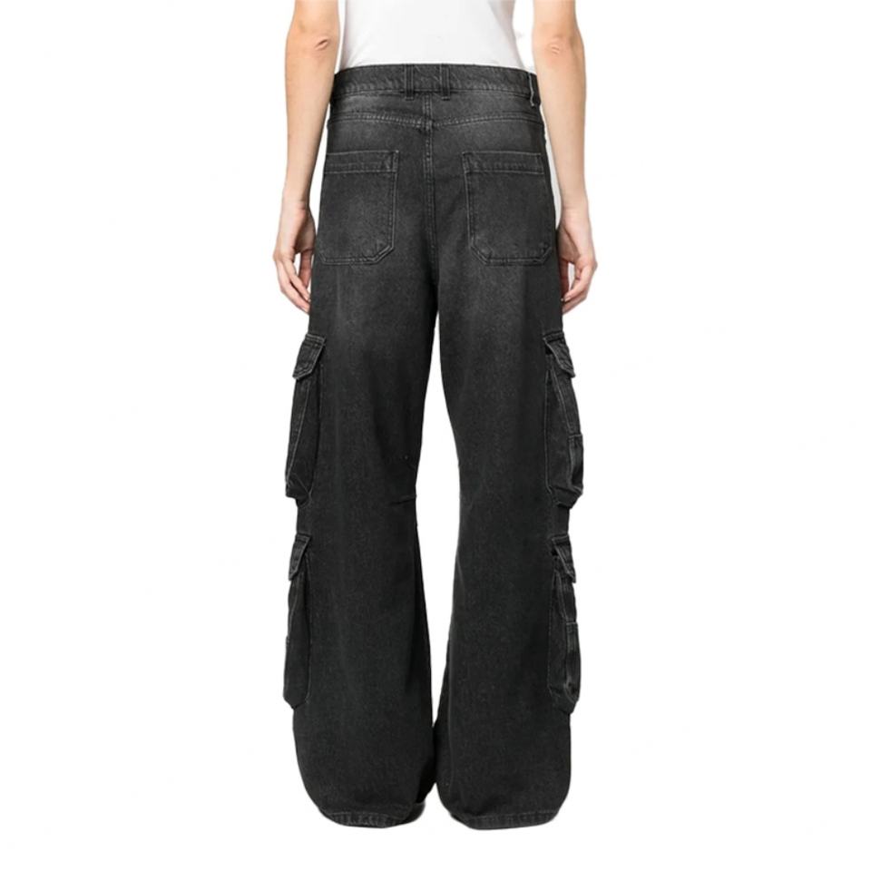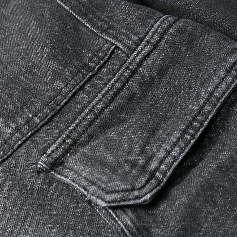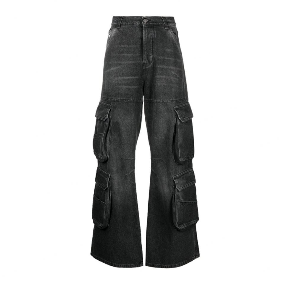 กางเกงยีนส์สีดำทรงหลวมสไตล์ฮิปฮอปแนวสตรีทแฟชั่นใหม่สำหรับผู้ชาย ใส่ได้ทั้งฤดูใบไม้ผลิและฤดูใบไม้ร่วง ดีไซน์กระเป๋าหลายช่อง ทรงขากว้าง สไตล์วินเทจ