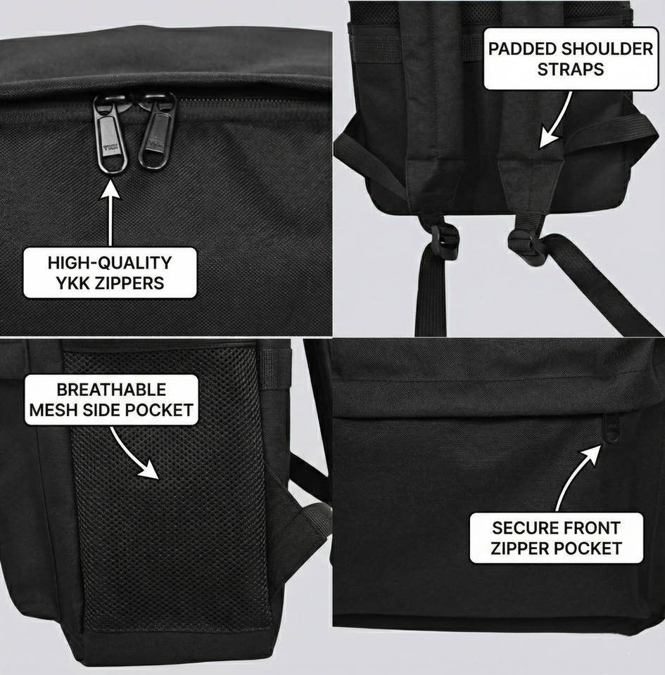 ทนทาน, น้ำหนักเบา, Large capacity, มัลติฟังก์ชัน, High quality, ขนาดเล็ก, ระบายอากาศ, แขวน, ความจุสูง, ป้องกันการโจรกรรมคุณสมบัติ