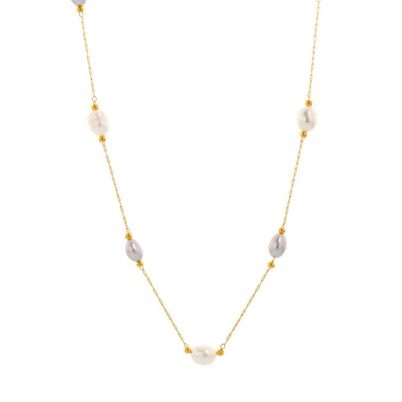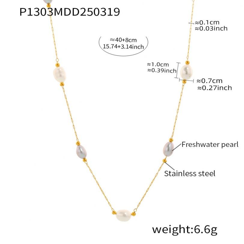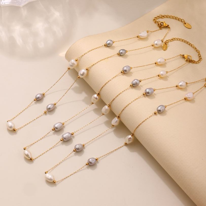 สร้อยคอแฟชั่นใหม่ ไม่ลอก ไม่ดำ ประดับมุกน้ำจืดแท้ ทอง 18K พร้อมจี้สแตนเลส