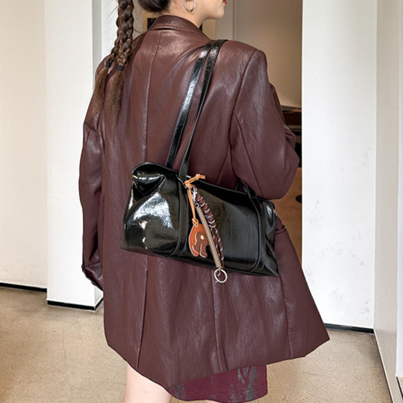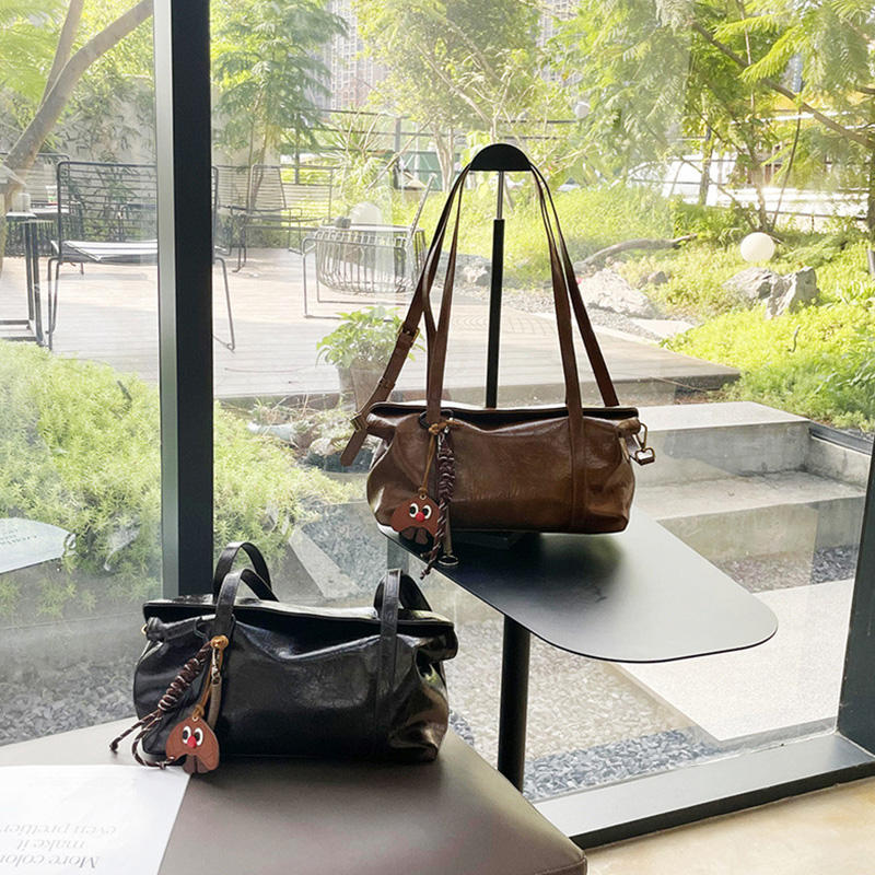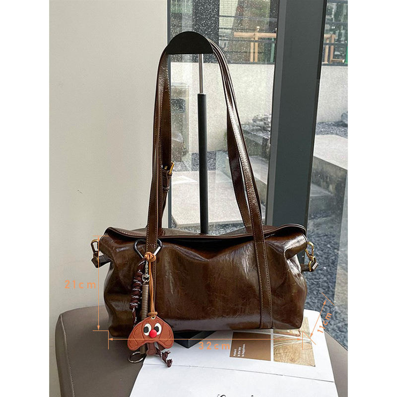 กระเป๋าโท้ทสะพายไหล่ข้างเดียวทรงบอสตันหนังแท้สำหรับผู้หญิง ดีไซน์ทันสมัย เรียบง่าย สไตล์ลำลอง