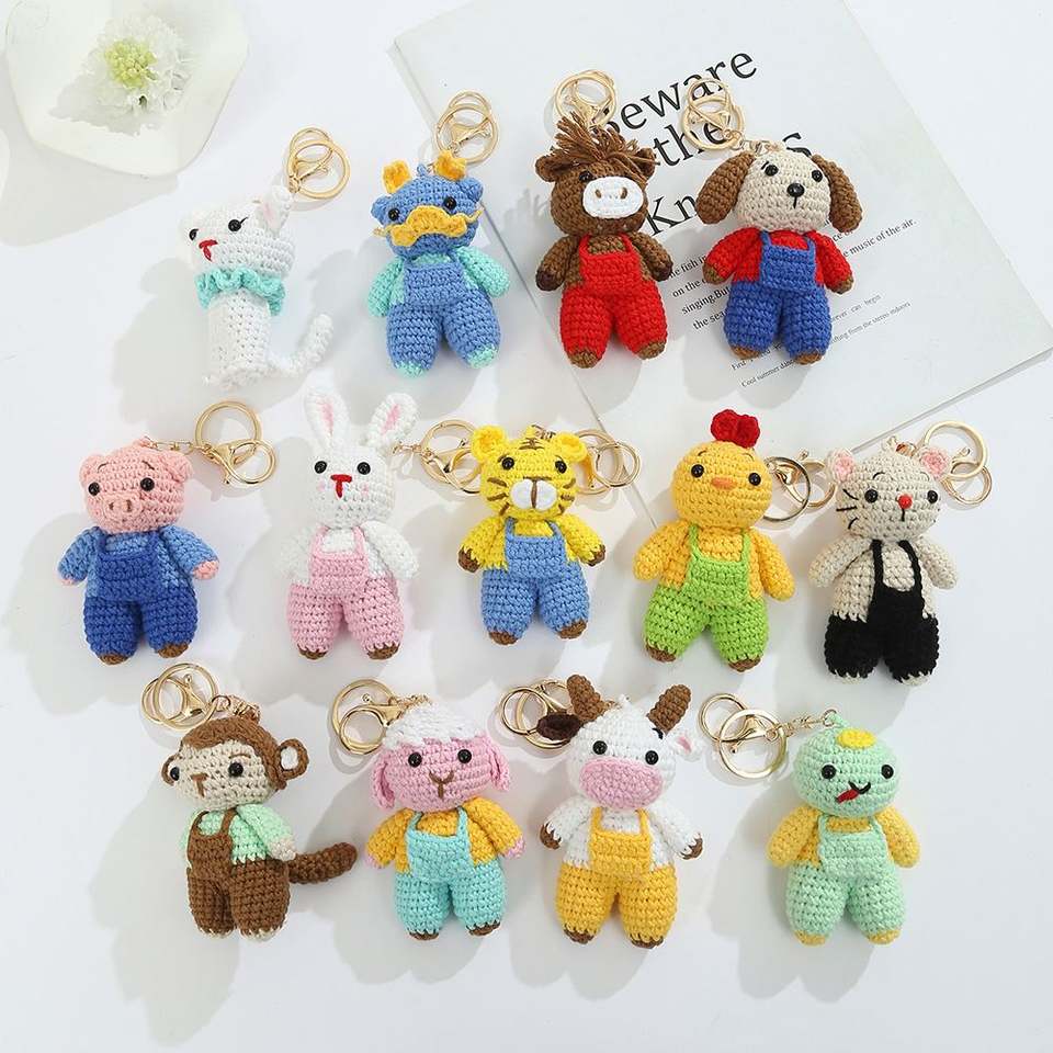ตุ๊กตาถักไหมพรมรูปสัตว์ประจำปีนักษัตร 12 ราศี งานฝีมือประณีต น่ารัก ใช้เป็นเครื่องประดับห้อยได้ ขายส่ง