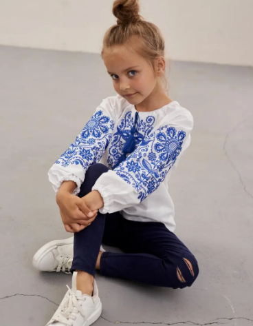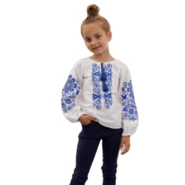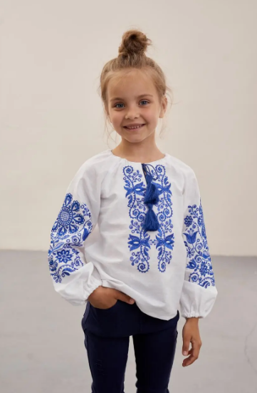 เสื้อเบลาส์ยูเครนยาวขนาดเล็กสำหรับเด็กเสื้อปักแขนพองยาวผ้าทอเป็นมิตรต่อสิ่งแวดล้อม
