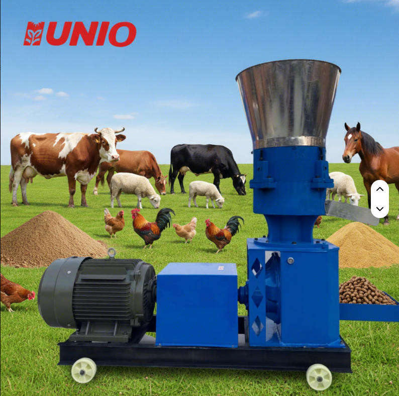 เครื่องอัดเม็ดอาหารสัตว์แบบลูกกลิ้ง 3 ลูกกลิ้ง รุ่นใหม่ Unio 3 ใช้ไฟฟ้า/ดีเซล/น้ำมันเบนซิน ผลิตเม็ดอาหารได้ 150 กก./ชม. ทำจากโลหะ สำหรับใช้ในฟาร์มปศุสัตว์และสัตว์ปีกในครัวเรือน