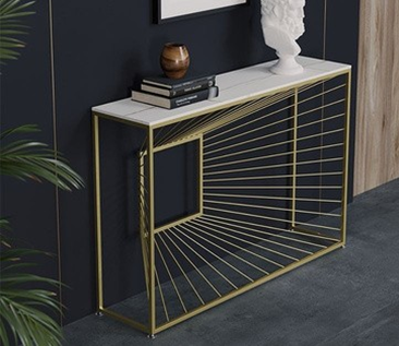 โต๊ะคอนโซลดีไซน์ใหม่สุดหรูหุ้มทองเหลือง สำหรับโถงทางเดิน โรงแรม สำนักงาน ผลิตในอินเดีย