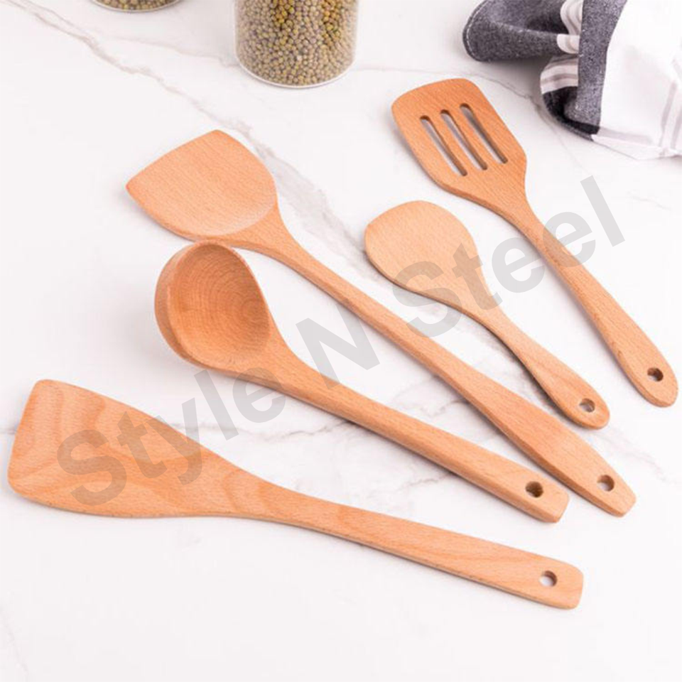 ชุดอุปกรณ์เครื่องครัวช้อนไม้สำหรับใช้ในครัวบ้านช้อนโลหะทนทานใหม่ไม่เหมือนใคร