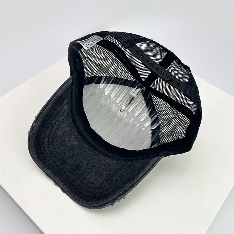 หมวกเบสบอลแบบบล็อกแตกใส่ได้ทั้งชายและหญิงใหม่หมวกตาข่ายย้อนยุคบังแดดระบายอากาศได้ดีอเนกประสงค์แฟชั่นเรียบง่าย