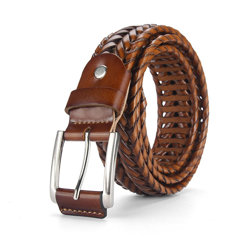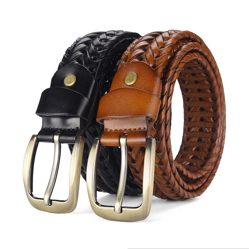 เข็มขัดหนังแท้แบบทอสำหรับทุกเพศ พร้อมหัวเข็มขัดโลหะผสมสังกะสี ทนทานต่อการฉีกขาด รูร้อยสายเต็มเส้น