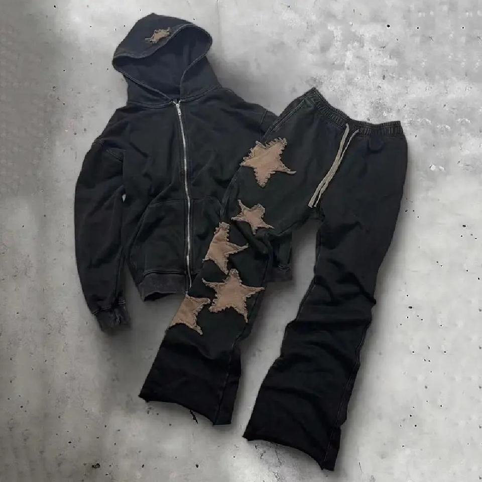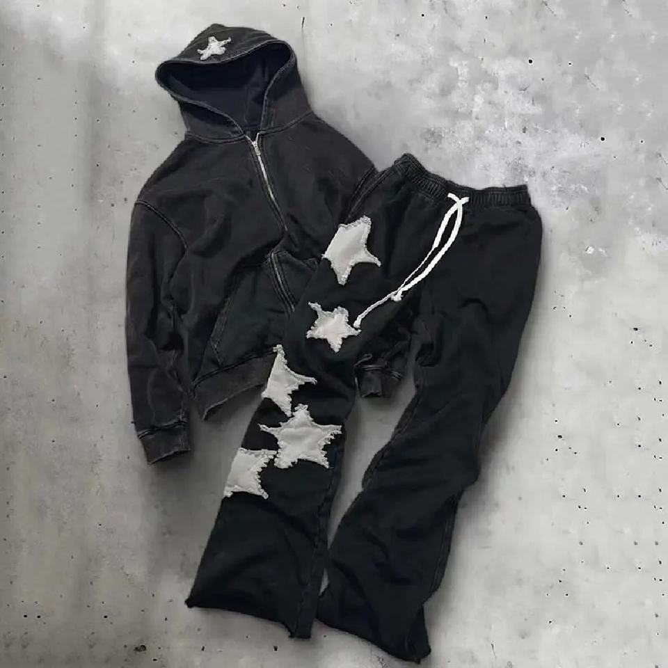 ชุดวอร์มผ้าฝ้ายหนานุ่ม 320 กรัม ทรงขาบาน ซิปแบบพิเศษ ล้างสีแบบแอซิดวอช ปักลายอย่างดี คุณภาพสูง สำหรับทุกเพศ รุ่นใหม่ เป็นมิตรต่อสิ่งแวดล้อม เหมาะสำหรับฤดูหนาว