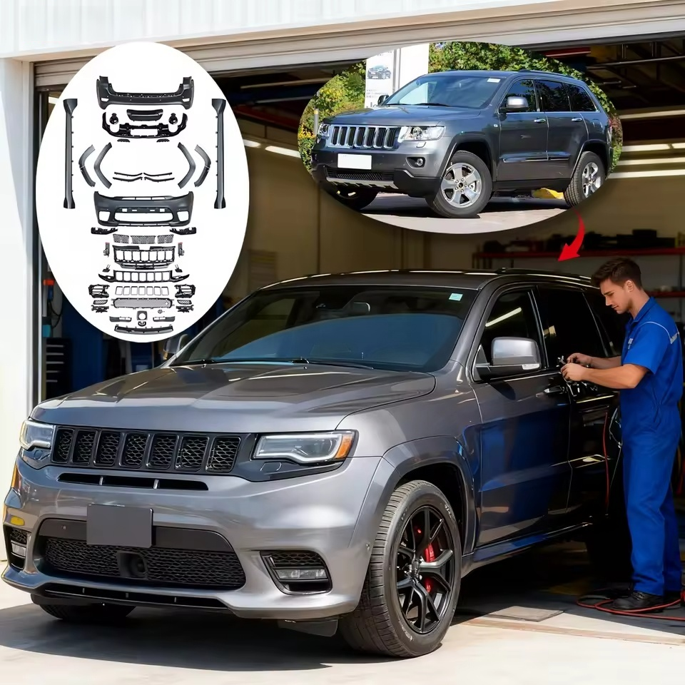 ชุดแต่งตัวถังรถยนต์ใหม่แบบไม่ทำสี สำหรับ Grand Cherokee SRT8 ปี 2011-2023 รุ่นปรับโฉม กันชนพร้อมไฟหน้า LED ติดตั้งง่ายแบบ Bolt-On รับประกัน 1 ปี