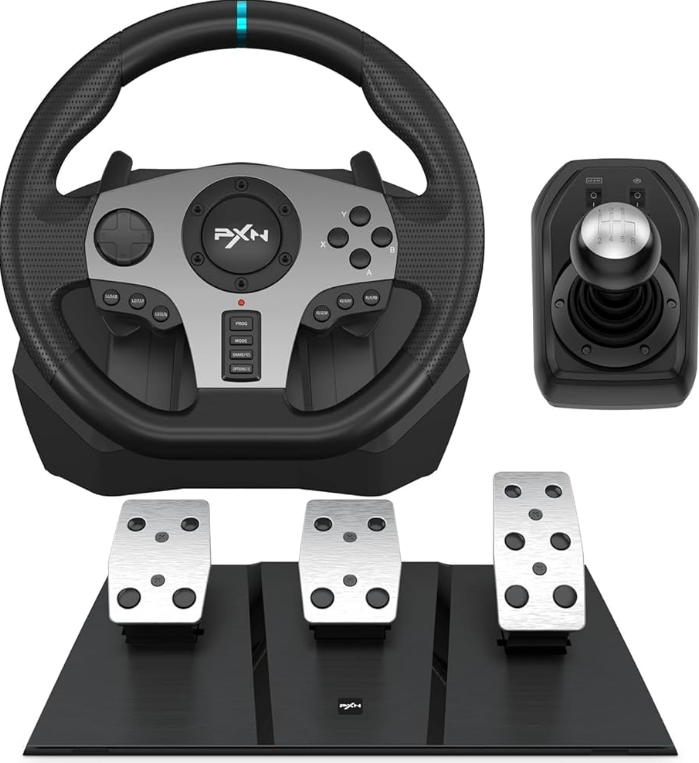 ชุดพวงมาลัยเกมมิ่งรุ่นใหม่ V9 พร้อมระบบสั่นสะเทือน หมุนได้ 900 องศา พร้อมแป้นเหยียบและคันเกียร์