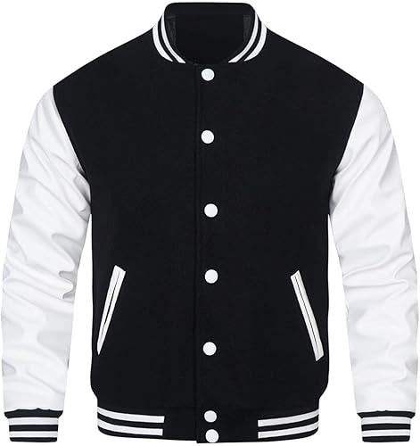 แจ็คเก็ตฤดูหนาวสีใหม่ แจ็คเก็ตเบสบอล Letterman สำหรับผู้ชาย แจ็คเก็ตเบสบอลทรงบอมเบอร์ แขนหนังและตัวเสื้อทำจากขนสัตว์ มีทุกสี
