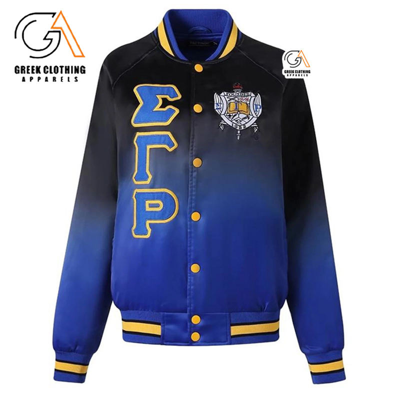 แจ็คเก็ตวาร์ซิตี้ใหม่สำหรับชมรมนักศึกษาหญิง ซิกมา แกมมา โร คุณภาพสูง ระบายอากาศได้ดี สตรีทแวร์แบบสั่งทำ แจ็คเก็ตวาร์ซิตี้ผู้ชายคุณภาพสูง