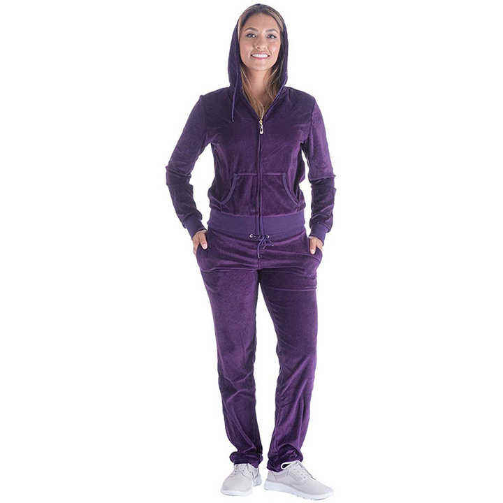 ชุดวอร์มกำมะหยี่2ชิ้นสำหรับผู้หญิงชุดวอร์มกางเกงสองชิ้นสำหรับฤดูหนาวชุดออกกำลังกาย