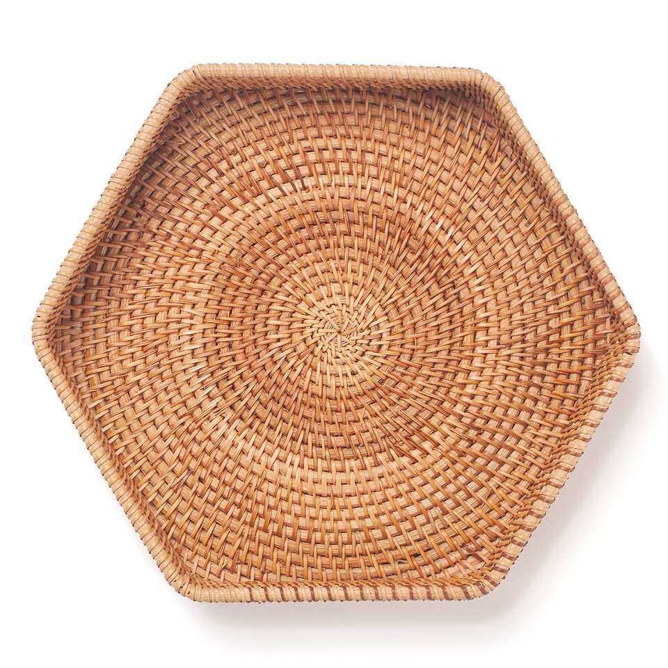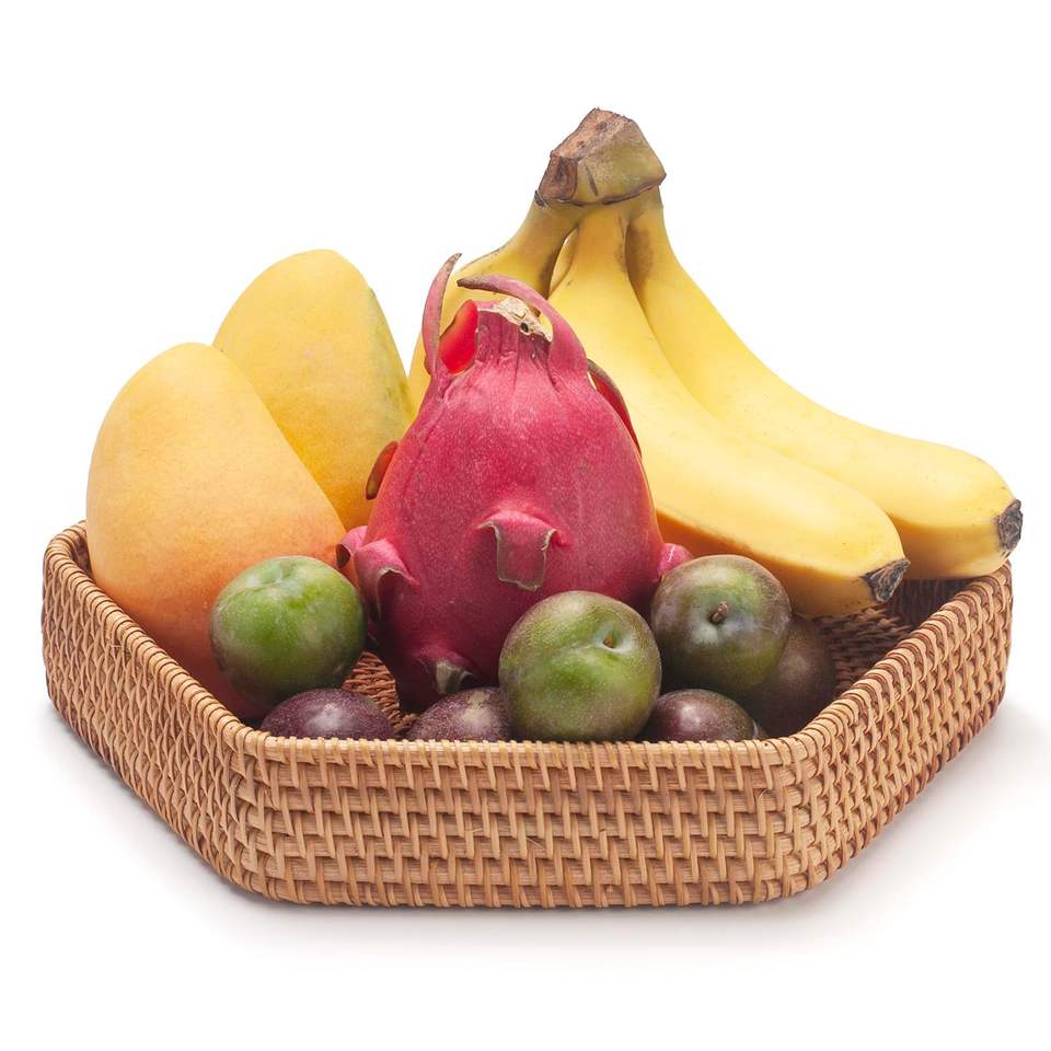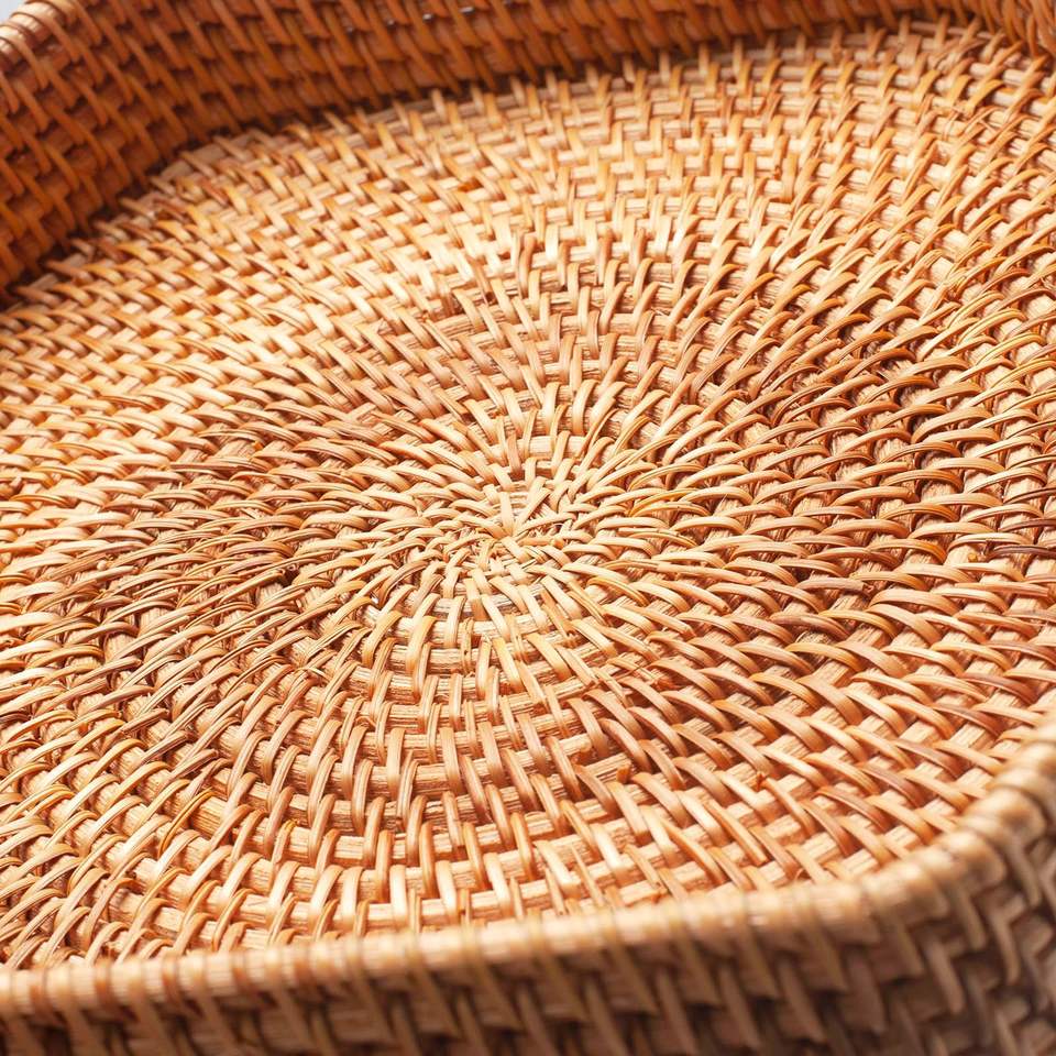 ตะกร้าหวายทรงกลมทำด้วยมือสำหรับตกแต่งตะกร้าหวายผลไม้ธรรมชาติเป็นมิตรกับสิ่งแวดล้อม