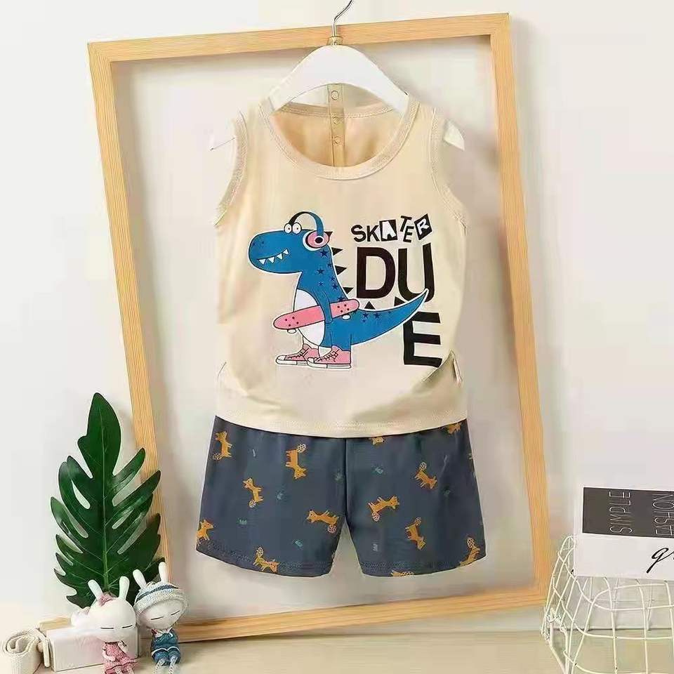 ชุดเสื้อกั๊กเด็กใหม่ ชุดฤดูร้อน ผ้าฝ้ายทอ เสื้อกั๊กเด็กผู้หญิง กางเกงขาสั้น 0-7 ปี เด็กผู้ชาย เสื้อแขนกุด เด็กเล็ก