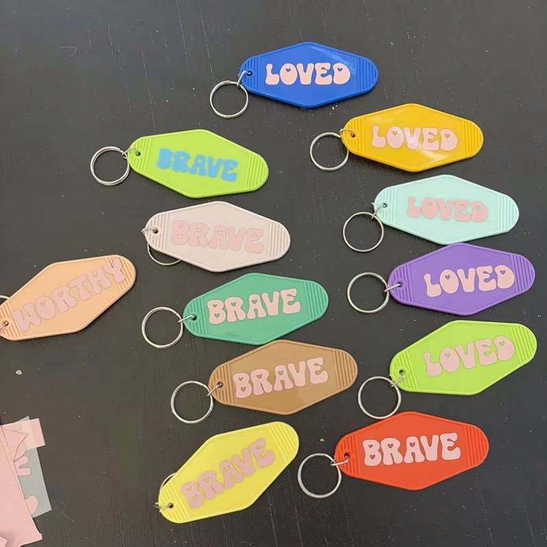 พวงกุญแจโรงแรมดีไซน์วินเทจใหม่ พวงกุญแจพลาสติกพิมพ์ลายโลโก้ตามสั่ง หมายเลขห้องพัก