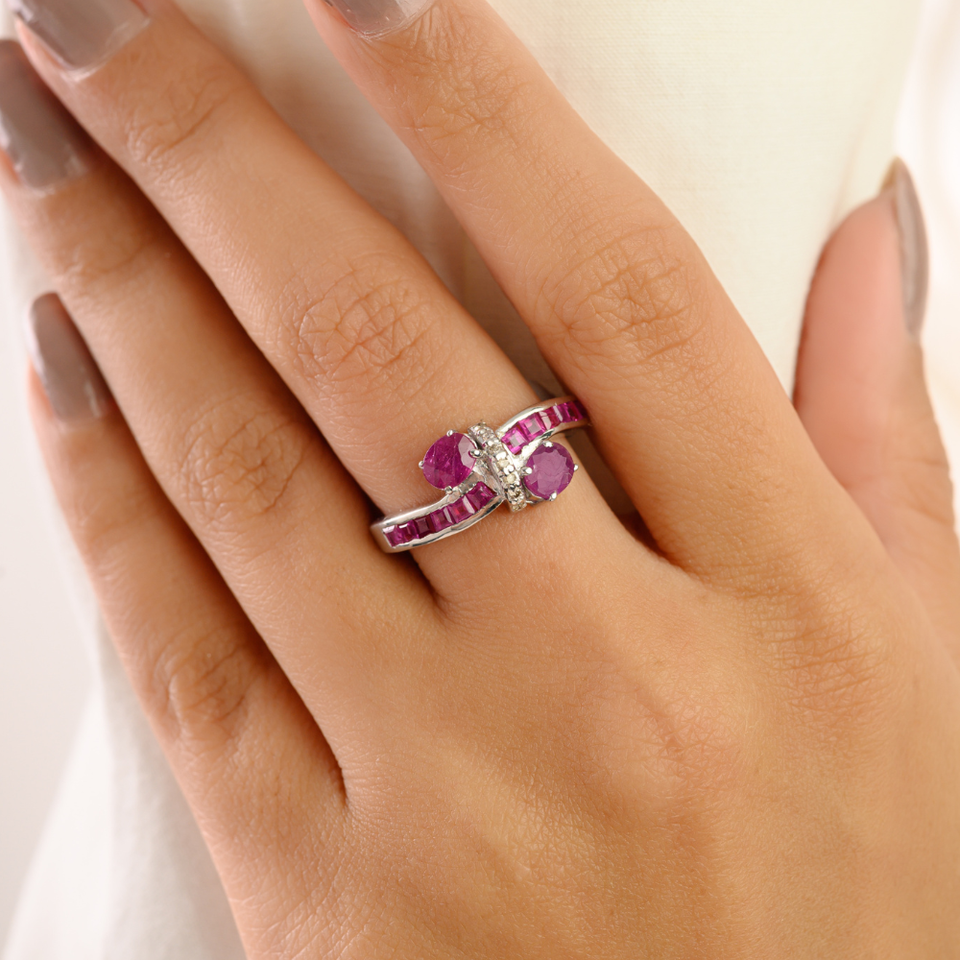 แหวนทับทิมแบบไขว้สองแถวสไตล์วินเทจใหม่ ทรงเจ้าหญิงและทรงวงรี สำหรับผู้หญิง เครื่องประดับชั้นดี ขายส่ง