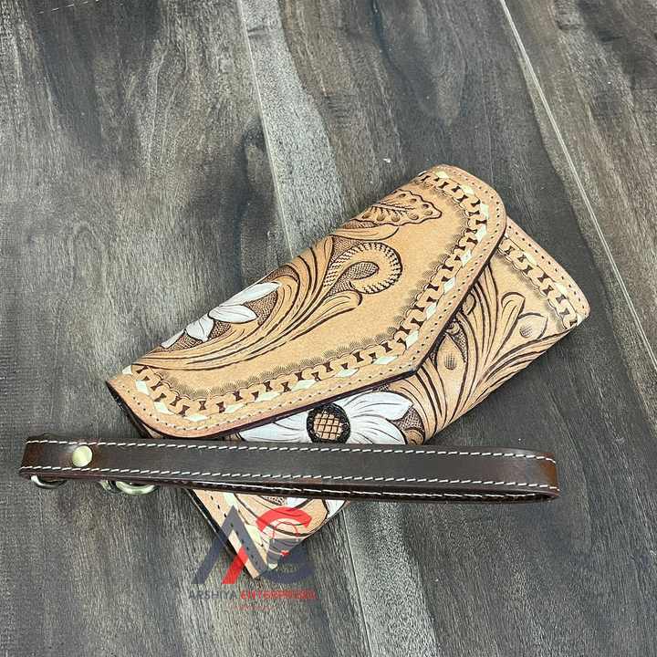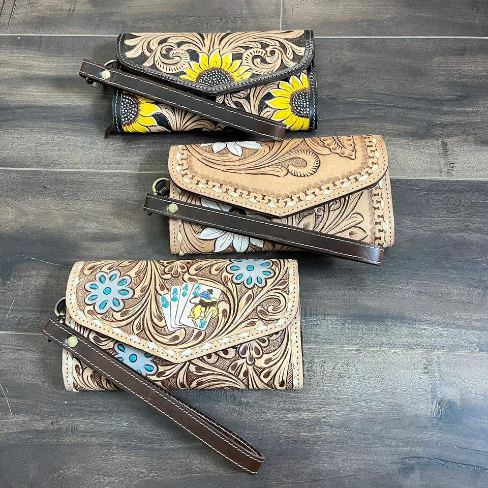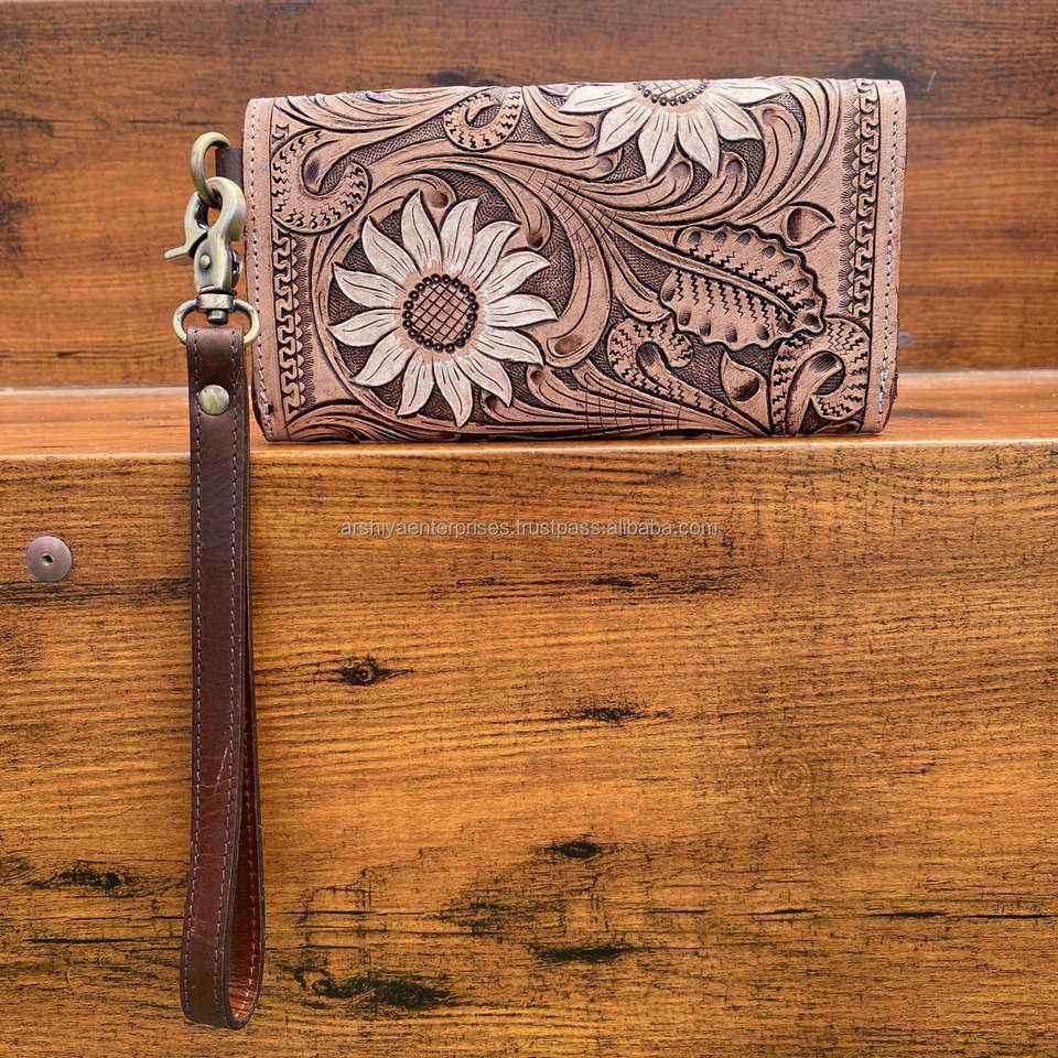 กระเป๋าคลัทช์สำหรับผู้หญิงหนังแท้แบบวินเทจใหม่ลายดอกไม้มีที่ใส่บัตรหลายใบกระเป๋าสตางค์แบบ RFID สำหรับผู้หญิง