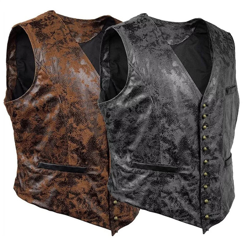 เสื้อกั๊กผู้ชายสไตล์วินเทจใหม่, เสื้อกั๊กหนังเทียมกระดุมกลางหน้าอกเดียวชุดอัศวินแขนกุด